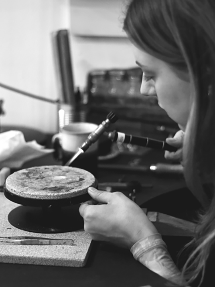 I primarily work with traditional goldsmithing techniques, and once in a while incorporate modern technologies.